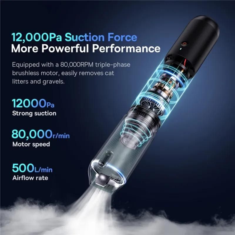 Bộ hút bụi này có công suất 100W và có thể hút được các loại bụi và rác thải khác nhau như bụi mịn, lông thú, bụi bẩn và các vật nhỏ khác. Bộ lọc HEPA có trong thiết bị này giúp loại bỏ các hạt bụi nhỏ và các tạp chất khác, giúp không khí trong xe của bạn sạch sẽ hơn.
