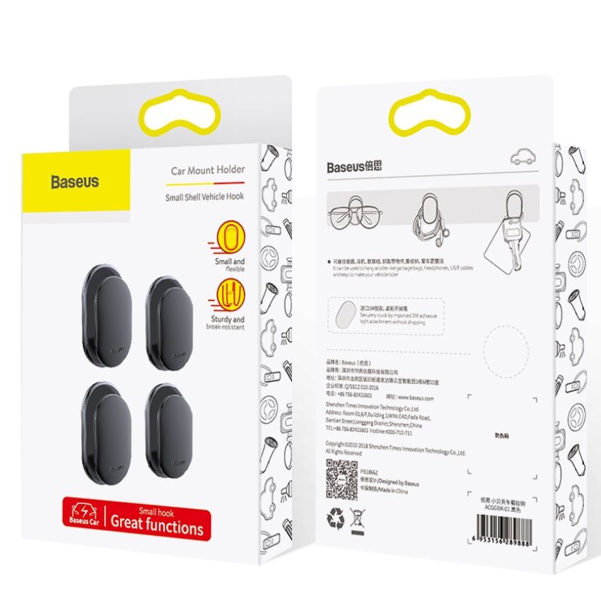 Giới thiệu sản phẩm Móc dán treo đồ đa năng Baseus Small Shell Vehicle Hook (4PCS ,Sticker Paste Holder) dùng trong xe hơi, tường nhà, bếp