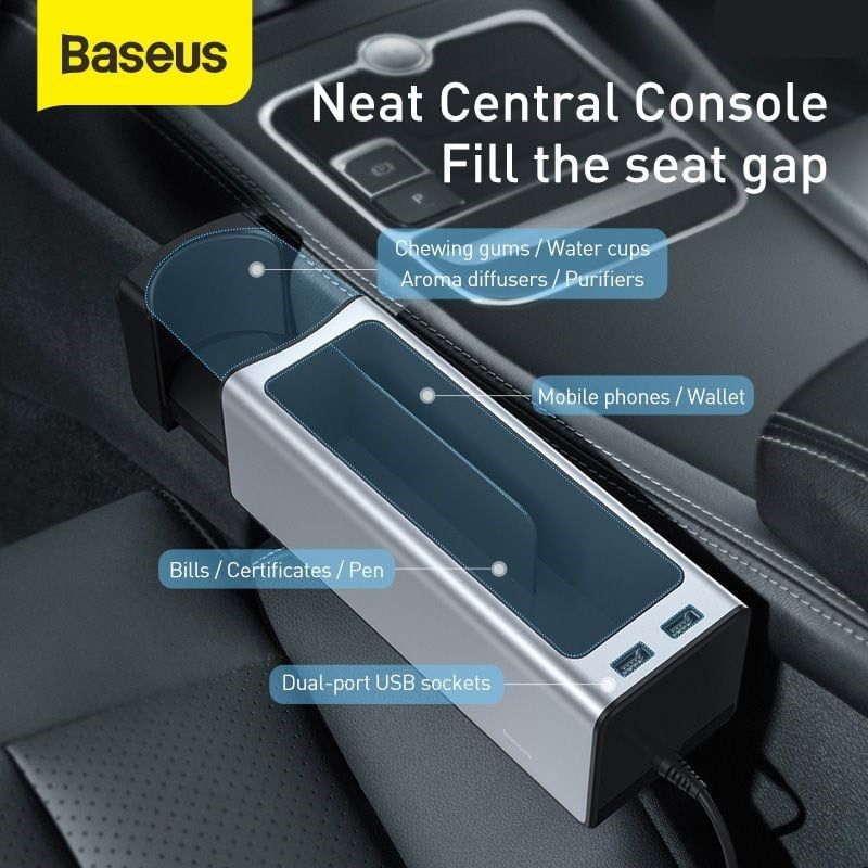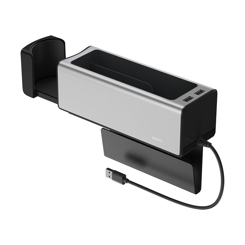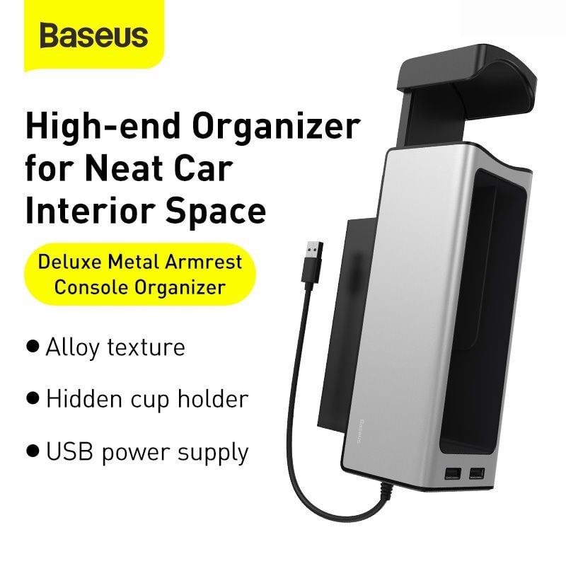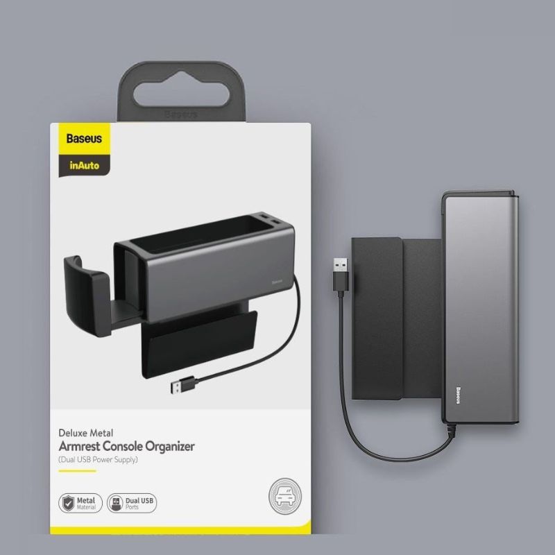 1 x Ngăn chứa đồ tiện dụng tích hợp Dock sạc USB dùng trên xe hơi Baseus Deluxe Metal Armrest Console Organizer