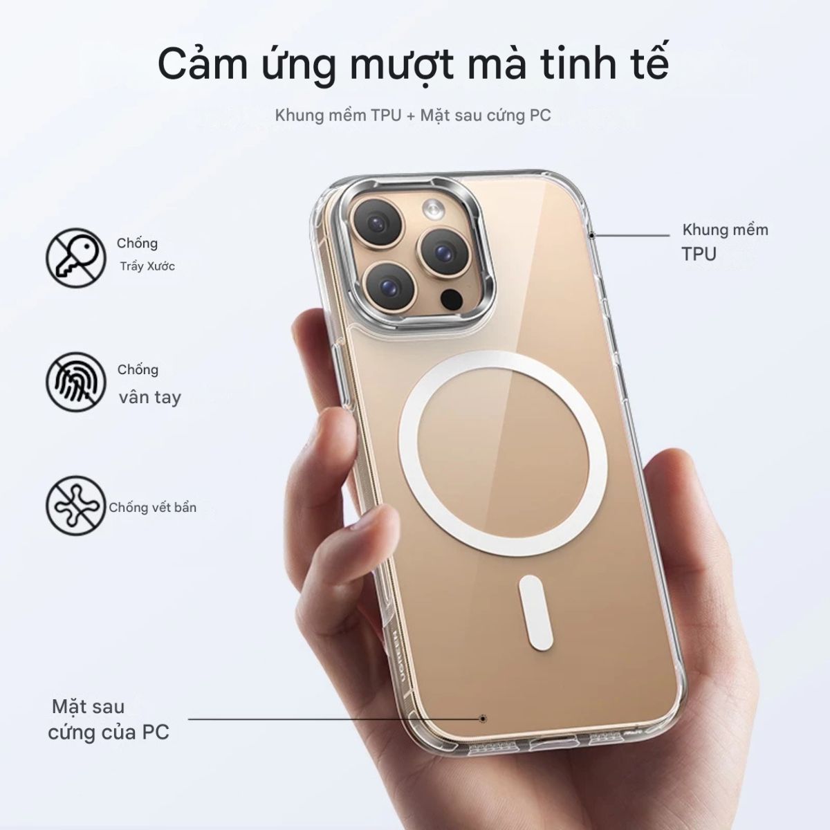 - Tích hợp vòng từ tính chuẩn MagSafe, tương thích hoàn hảo với các phụ kiện như sạc không dây, ví MagSafe, đế giữ trên xe, ...