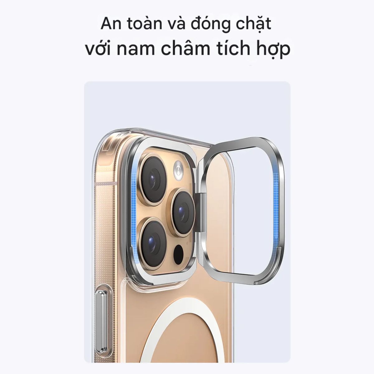 Hình ảnh Ốp lưng trong suốt Baseus Crystal Magnetic Case with Camera Ring Stand cho iPhone (Chống sốc, hỗ trợ sạc MagSafe, chân đế gập tiện lợi)