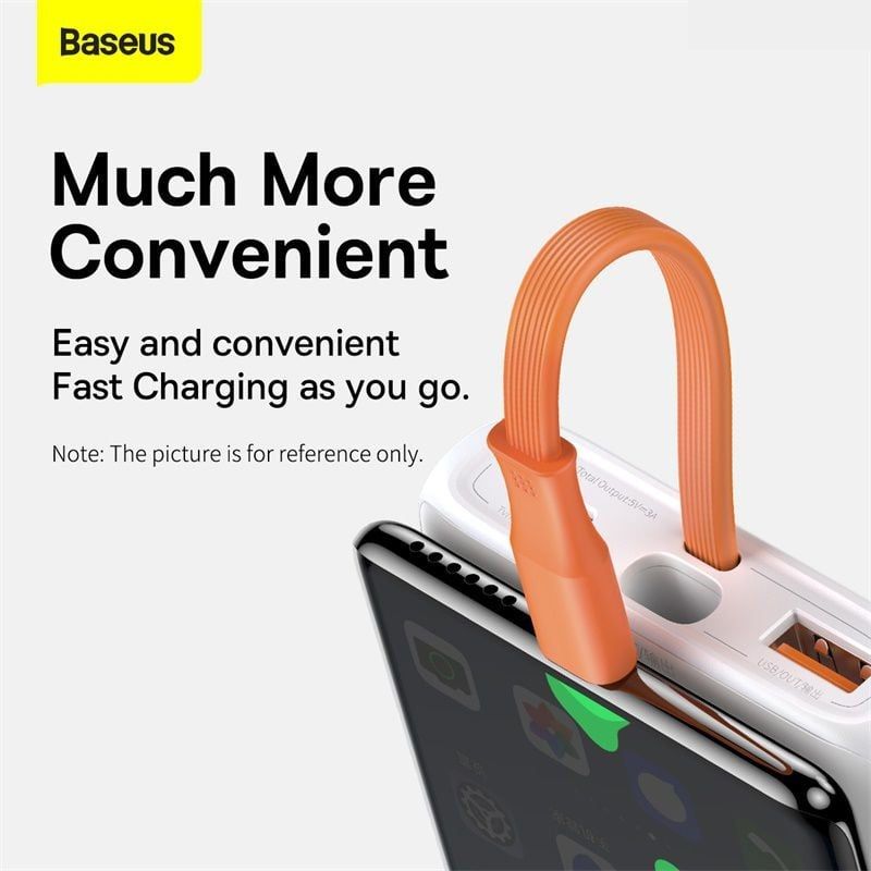 - Sản phẩm được trang bị sẵn 1 dây sạc chuẩn Type C và Lighting có chiều dài 19cm . Dây sạc này làm bằng chất liệu TPE mềm dẽo và linh hoạt, có thiết kế thông minh dễ dàng tháo lắp, khi gắn vào chỉ như một dây đeo tiện dụng cho pin. Thiết kế này mang đến sự gọn gàng và tiện dụng cho pin sạc.