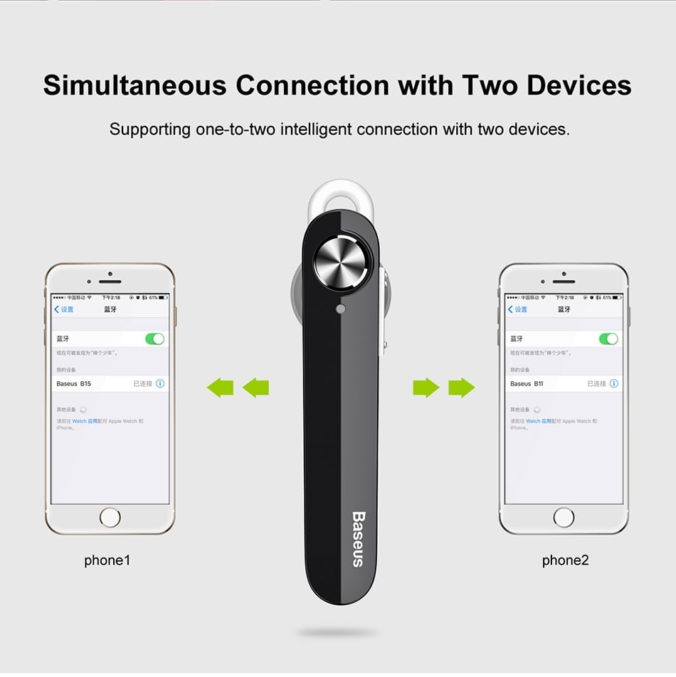 - Tai nghe Bluetooth Baseus A01 sử dụng kết nối Bluetooth chuẩn 4.1 giúp tiết kiệm pin hơn. Cho phép Baseus A01 có thể kết nối cùng lúc với 2 thiết bị . Việc kết nối được nhanh chóng, dễ dàng, ổn định và nhất là hỗ trợ việc xử lý và truyền tải âm thanh độ nét cực cao.