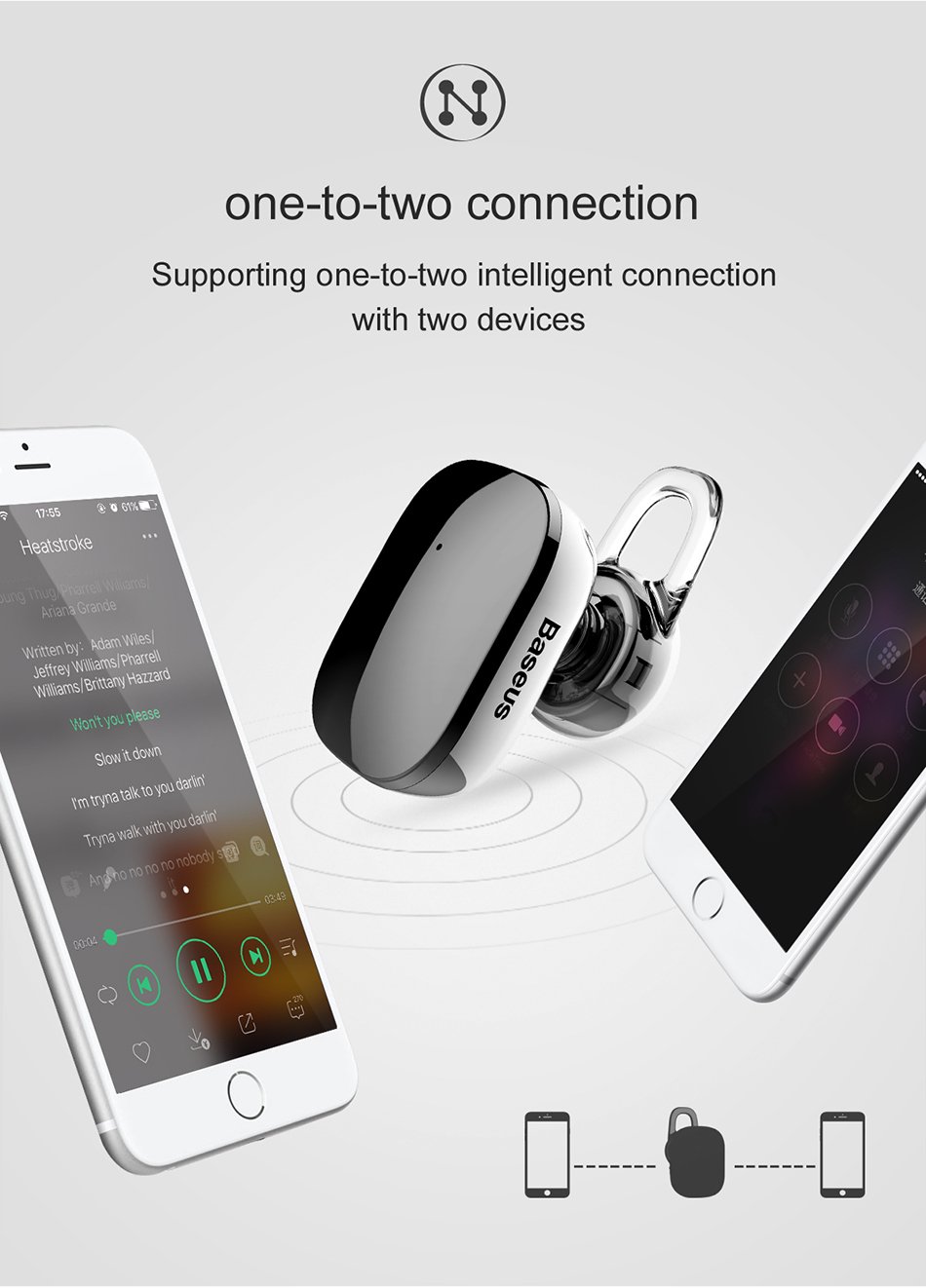 - Tai nghe Bluetooth Baseus A02 sử dụng kết nối Bluetooth chuẩn 4.1 giúp tiết kiệm pin hơn. Cho phép Baseus A02 có thể kết nối cùng lúc với 2 thiết bị. Việc kết nối được nhanh chóng, dễ dàng, ổn định và nhất là hỗ trợ việc xử lý và truyền tải âm thanh độ nét cực cao.