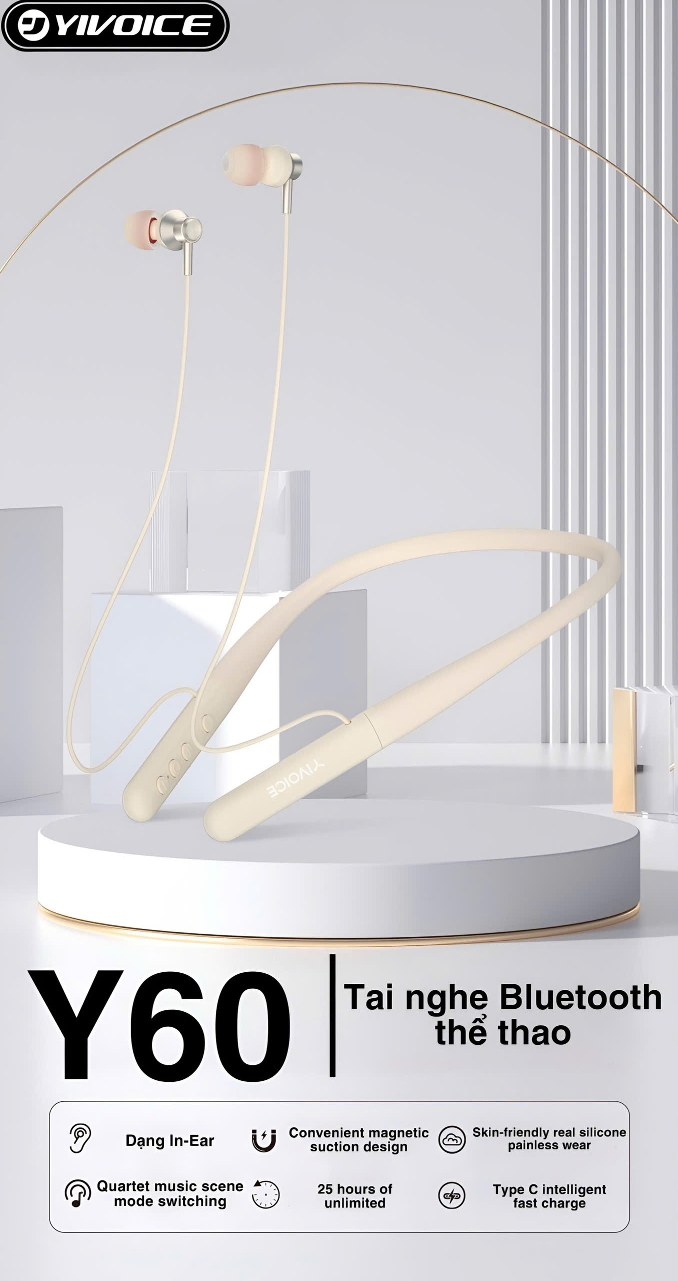 - Tai nghe Bluetooth thể thao dây choàng cổ YIVOICE Y50 và YIVOICE Y60 là sự lựa chọn tuyệt vời cho những ai yêu thích vận động và cần một tai nghe bền bỉ, âm thanh tốt, và thời gian sử dụng lâu dài. Với thiết kế năng động, dung lượng pin lớn và khả năng chống nước IPX5, YIVOICE Y50 và YIVOICE Y60 chắc chắn sẽ là người bạn đồng hành đáng tin cậy trong mọi hoạt động thể thao của bạn.