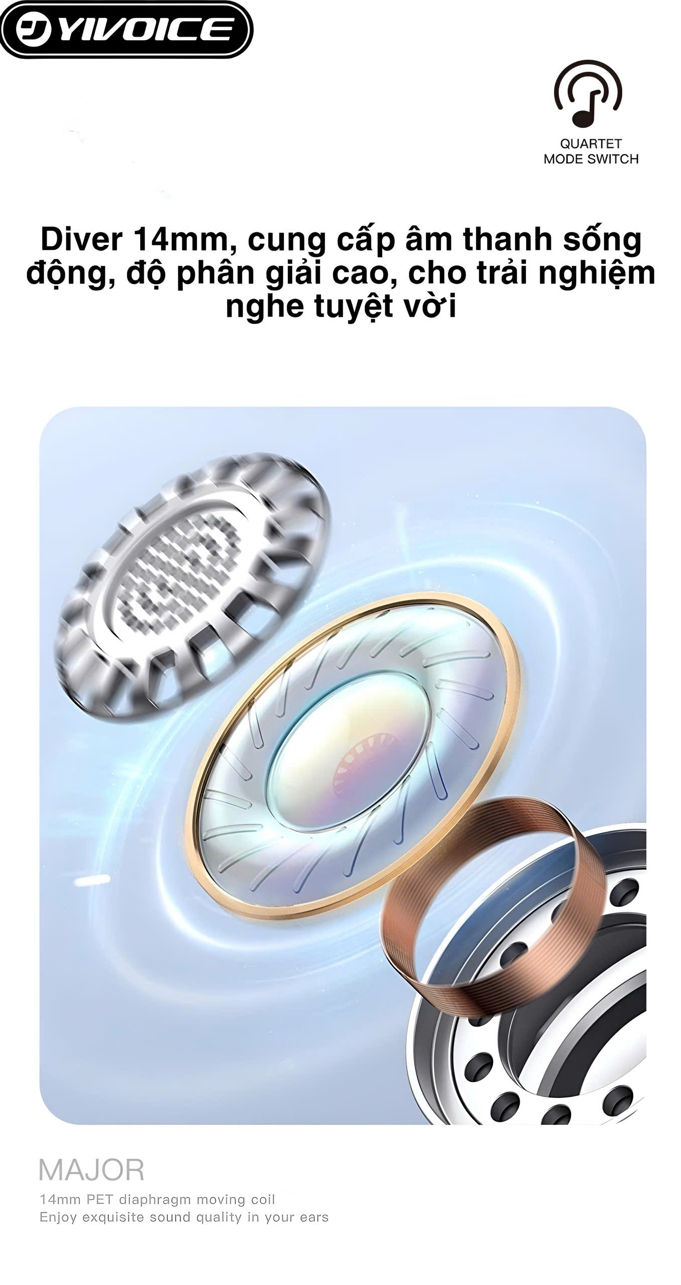- YIVOICE Y50 và YIVOICE Y60 được trang bị công nghệ Bluetooth 5.3, giúp kết nối nhanh chóng và ổn định với các thiết bị di động, máy tính bảng và các thiết bị khác. Phạm vi kết nối rộng và tốc độ truyền tải cao đảm bảo âm thanh không bị gián đoạn hay trễ khi bạn di chuyển.