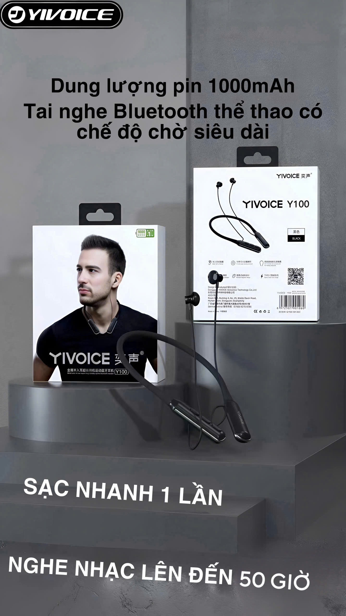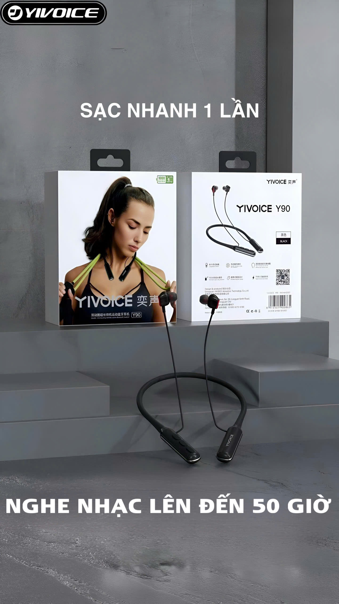 - Tai Nghe Bluetooth Thể Thao Choàng Cổ YIVOICE Y90 và YIVOICE Y100 là sự lựa chọn lý tưởng cho những ai cần một tai nghe bền bỉ, dung lượng pin khủng và khả năng chống nước tốt. Với thiết kế tiện lợi, chất lượng âm thanh vượt trội và thời gian sử dụng lên đến 50 giờ, YIVOICE Y90 và YIVOICE Y100 chắc chắn sẽ là người bạn đồng hành đáng tin cậy trong mọi hoạt động thể thao và cuộc sống hằng ngày của bạn.