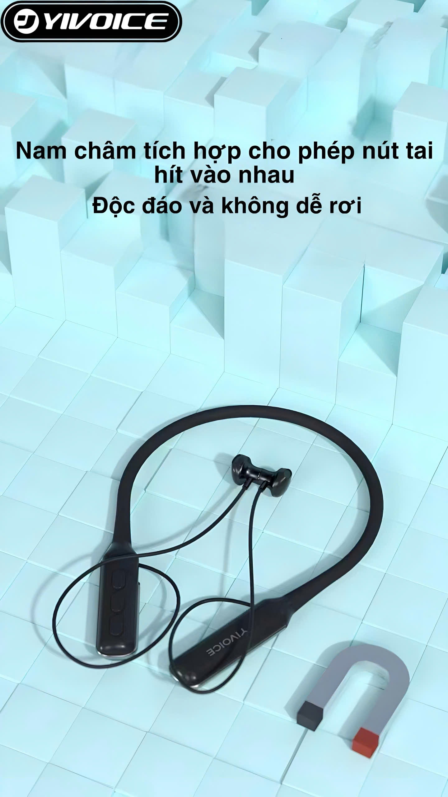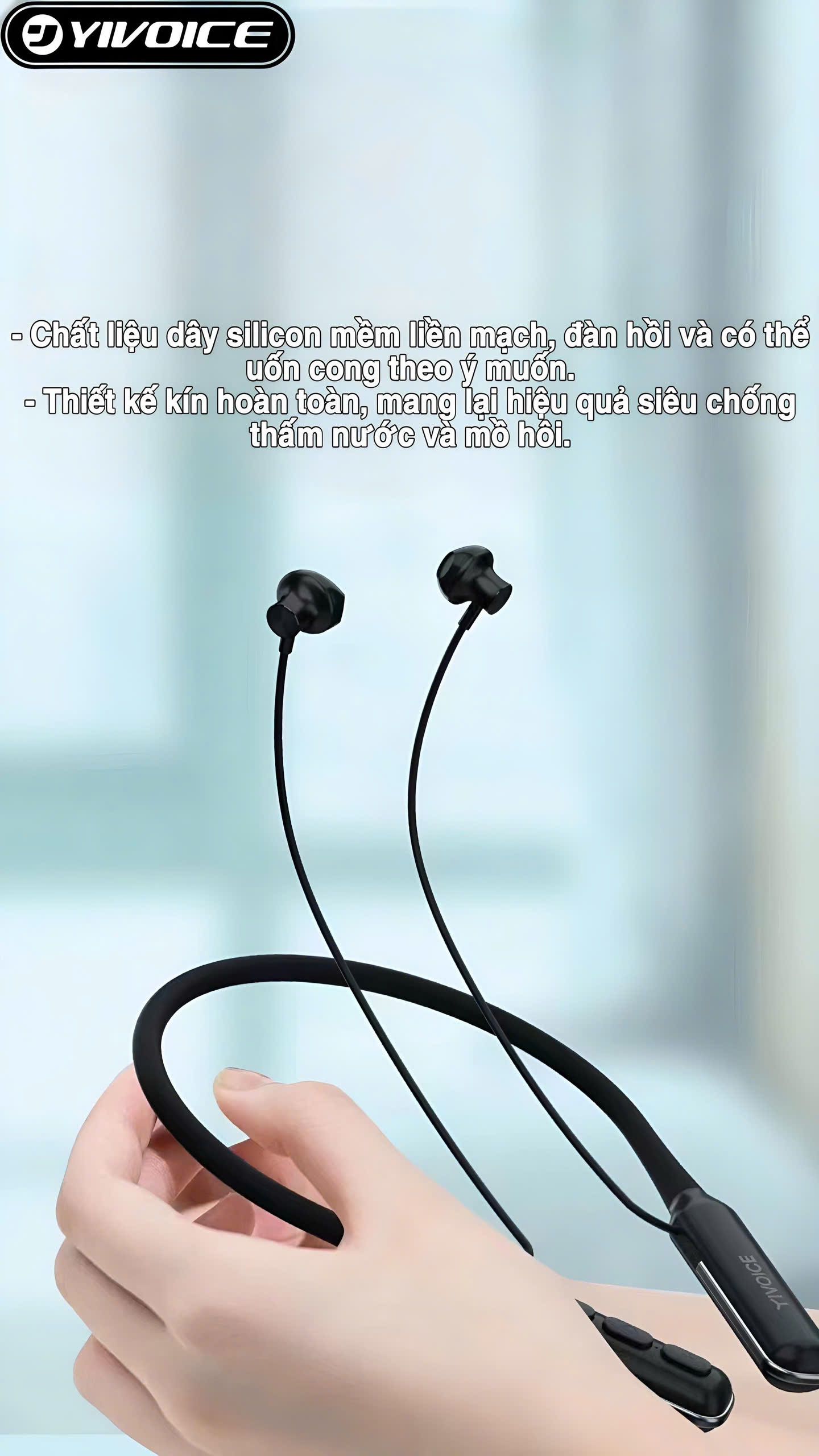 - Tai Nghe Bluetooth Thể Thao Choàng Cổ YIVOICE Y90 và YIVOICE Y100 được thiết kế dành riêng cho những ai yêu thích các hoạt động thể thao. Với kiểu dáng dây choàng cổ tiện lợi, tai nghe này không chỉ giúp bạn dễ dàng mang theo mà còn đảm bảo an toàn trong các buổi tập luyện cường độ cao. Phần dây đeo cổ nhẹ và mềm mại, ôm sát cổ một cách thoải mái mà không gây cảm giác khó chịu. Đầu tai nghe được làm từ chất liệu cao cấp, đảm bảo vừa vặn và không gây đau tai dù bạn đeo trong nhiều giờ liền.
