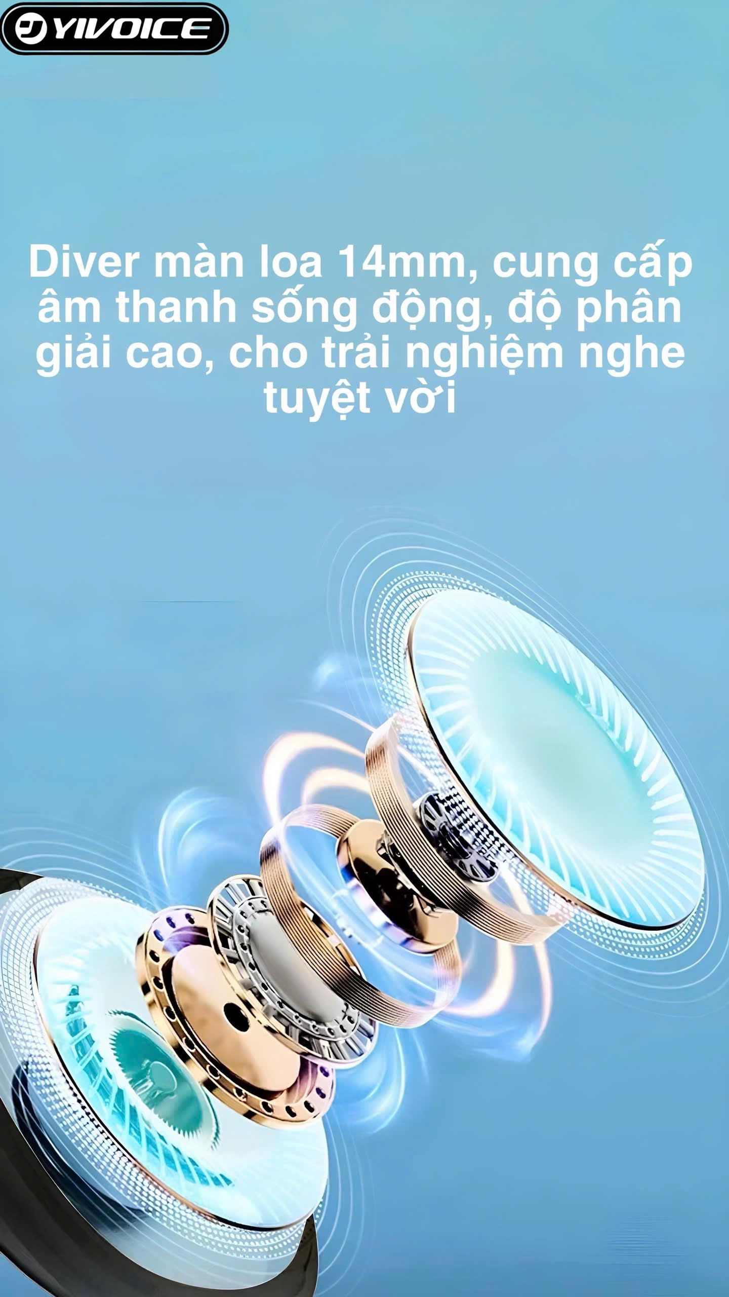 - YIVOICE Y90 và YIVOICE Y100 mang đến trải nghiệm âm thanh chất lượng cao với công nghệ Bluetooth 5.3 tiên tiến, giúp kết nối ổn định và truyền tải âm thanh sắc nét. Tai nghe được thiết kế để cung cấp âm thanh cân bằng giữa các dải âm, từ âm trầm sâu lắng đến âm cao trong trẻo, phù hợp với nhiều thể loại nhạc khác nhau. Điều này đảm bảo bạn sẽ có những giây phút thư giãn và tận hưởng âm nhạc tuyệt vời khi tập luyện hoặc di chuyển.