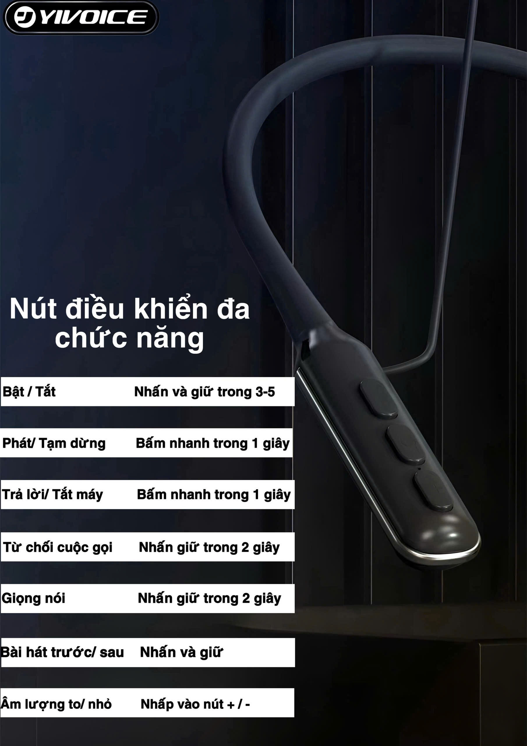 - Tai Nghe Bluetooth Thể Thao Choàng Cổ YIVOICE Y90 và YIVOICE Y100 được trang bị các nút điều khiển dễ sử dụng, giúp bạn nhanh chóng điều chỉnh âm lượng, chuyển bài hát hoặc nhận cuộc gọi mà không cần phải lấy điện thoại ra khỏi túi. Sự tiện lợi này giúp bạn tập trung hơn vào các hoạt động thể thao mà vẫn dễ dàng quản lý âm thanh.