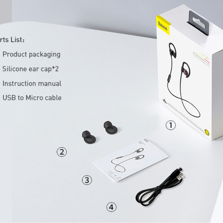 Tai Nghe Bluetooth Thể Thao Baseus S17 Kháng Nước Chuẩn IPX5, thiết kế ôm sát tai, bluetooth 5.0, công nghệ pin polymer 100mAh lên đến 7h nghe nhạc, hít từ tính, công nghệ chống ồn,...