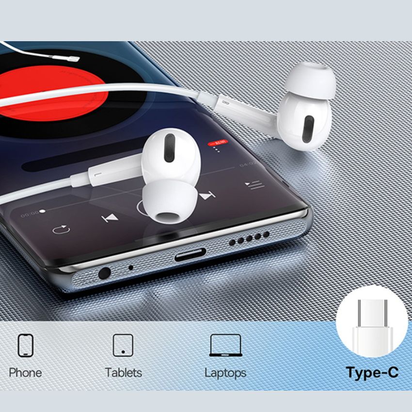 Tai nghe USB Type-C Baseus Encok C18 được thiết kế theo dạng nhét tai (in-ear), đi kèm với bộ đệm tai bằng silicone mềm mại và êm ái. Điều này không chỉ đảm bảo rằng tai nghe vừa vặn tốt và thoải mái trong suốt thời gian dài sử dụng, mà còn tạo ra khả năng cách âm ấn tượng, giúp bạn tận hưởng âm nhạc một cách tập trung và chất lượng. Vì vậy, bạn sẽ có thể thưởng thức âm nhạc với chất lượng cao và trải nghiệm âm thanh sâu sắc hơn. Có thể nói rằng, thiết kế này không chỉ mang lại sự thoải mái mà còn tạo nên một không gian âm nhạc riêng tư, nơi bạn có thể thả mình vào thế giới âm nhạc mà không bị xao lãng bởi tiếng ồn xung quanh.