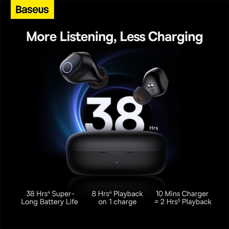 Baseus Bowie WM03 là một bộ tai nghe không dây siêu nhỏ gọn được sản xuất bởi thương hiệu Baseus. Khả năng kết nối ổn định, truyền tải nhanh chóng, không bị mất tín hiệu và gián đoạn âm nhạc nhờ công nghệ Bluetooth 5.3 giúp tai nghe tiết kiệm pin và kéo dài thời gian sử dụng lên đến 38 giờ.