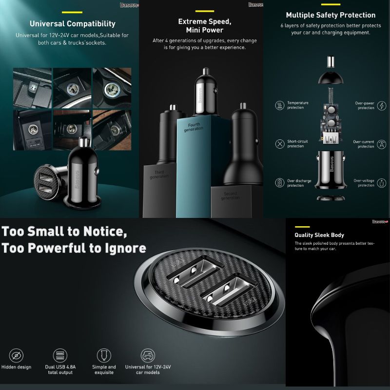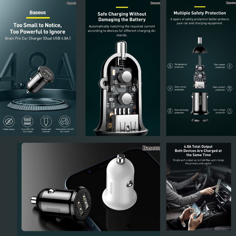 Hình ảnh chi tiết Tẩu sạc 2 cổng USB dùng trên xe hơi Baseus Grain Pro Car Charger