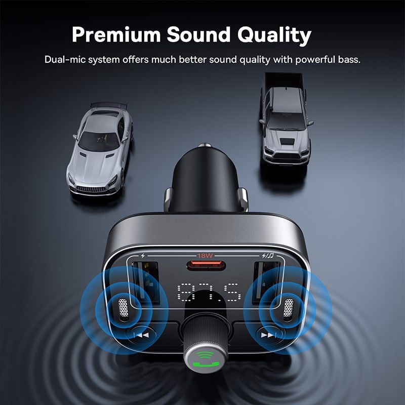Điểm độc đáo của tẩu sạc này là khả năng kết nối với đài radio của xe ôtô thông qua sóng FM. Bạn có thể dễ dàng truyền tín hiệu âm thanh từ điện thoại di động, máy tính bảng hoặc thiết bị nghe nhạc qua sóng FM, giúp bạn thưởng thức nhạc yêu thích một cách tiện lợi và chất lượng.