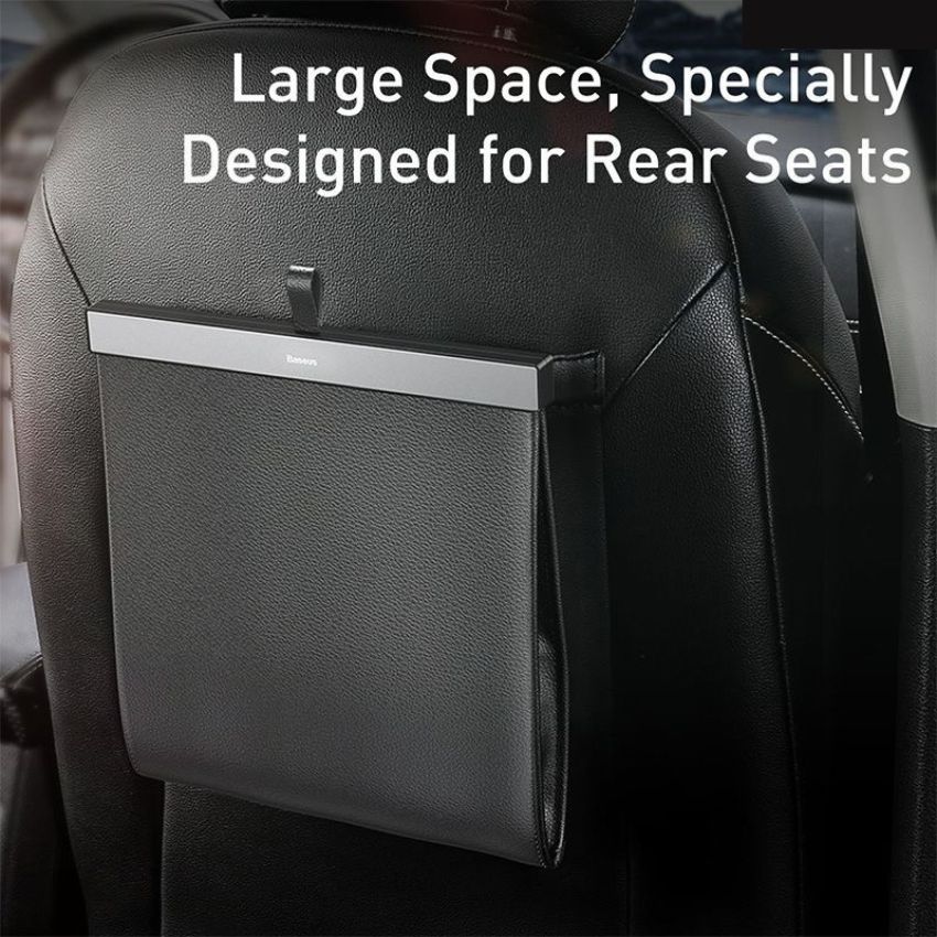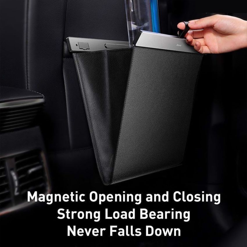 Hình ảnh Túi chứa đồ tiện dụng gắn lưng ghế trên xe hơi Baseus Large Garbage Bag (Túi lớn, da PU, nắm đậy kim loại có nam châm)- CRLJD