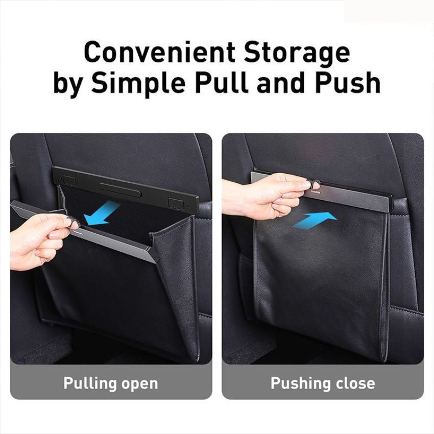 Tính năng Túi chứa đồ tiện dụng gắn lưng ghế trên xe hơi Baseus Large Garbage Bag (Túi lớn, da PU, nắm đậy kim loại có nam châm)- CRLJD